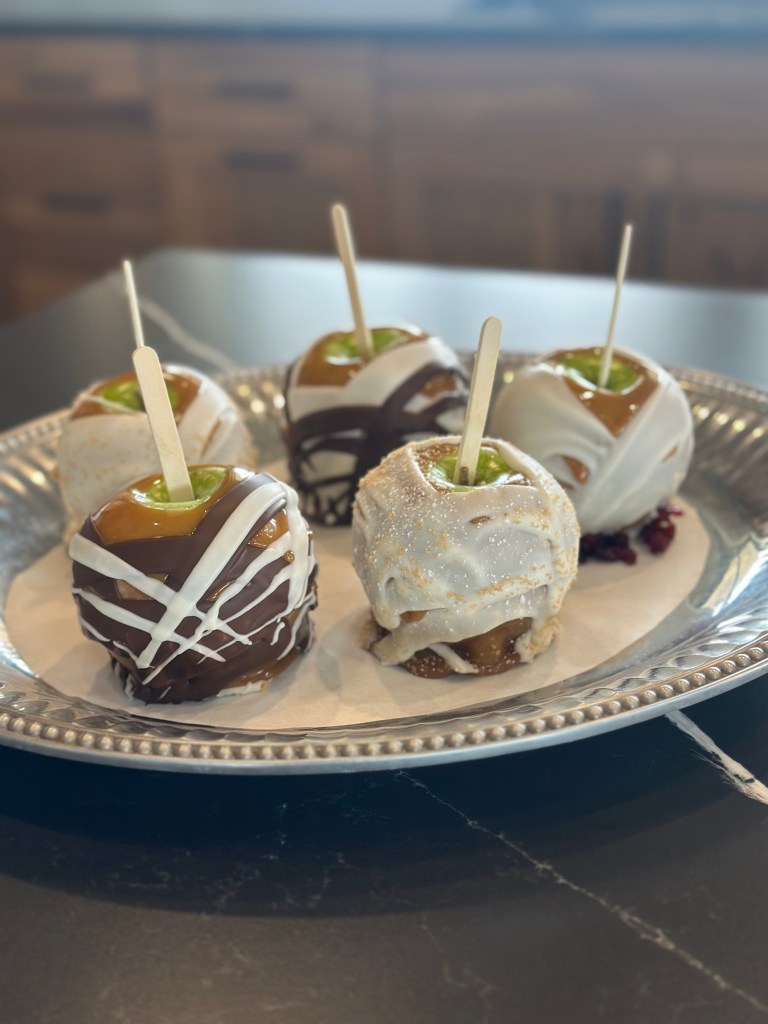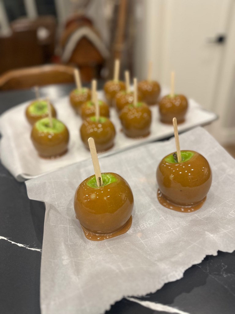 + Dip each apple in caramel. I find it’s easier to swirl the apple in caramel on it’s side.